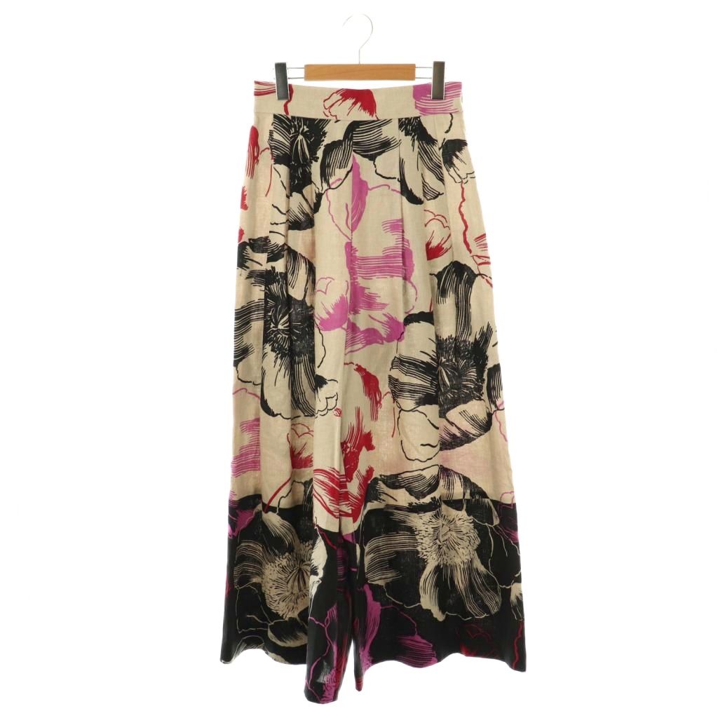 花柄 リネン ワイドパンツ