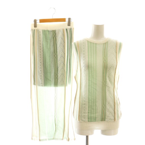 MEDI SHEER RANDOM STRIPE ノースリーブニット スカート セットアップ