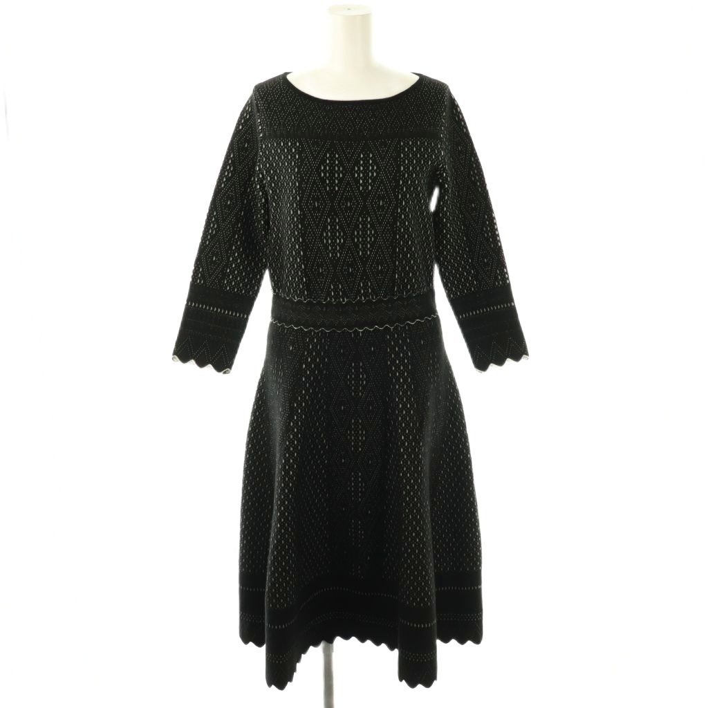 ニット バイカラーレースジャガードフレア ワンピース