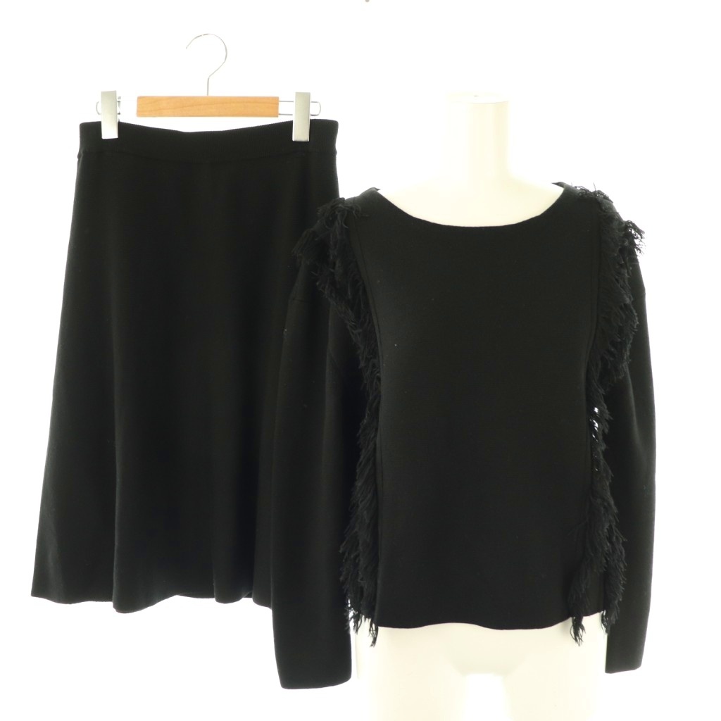 ウールフリンジニット×スカート セットアップ