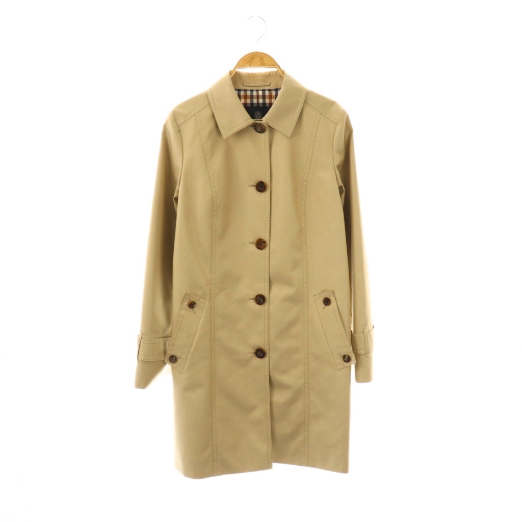アクアスキュータムはトレンチコートが有名で、バーバリーよりも早く創業し、世界初の防水ウール生地の発明をしたブランドです。