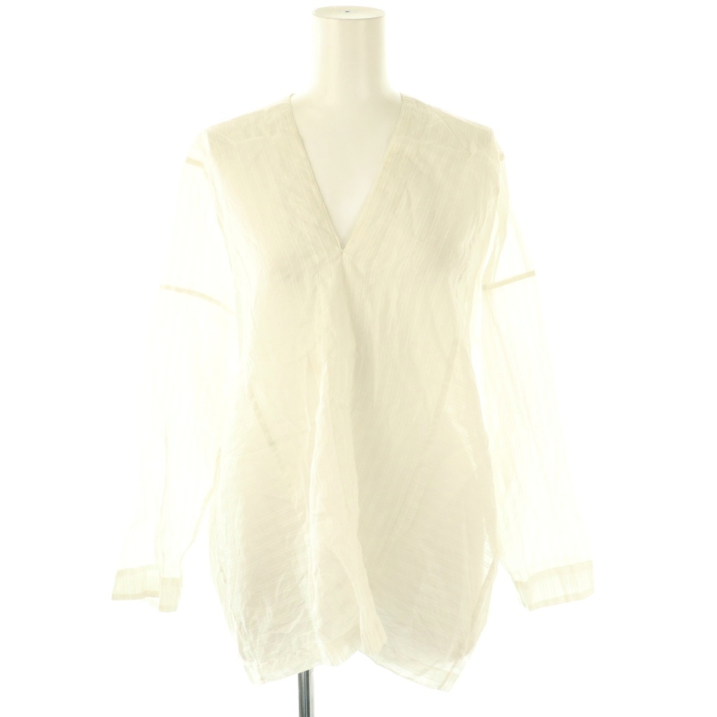 ストライプ柄コットンシルクプルオーバートップス
