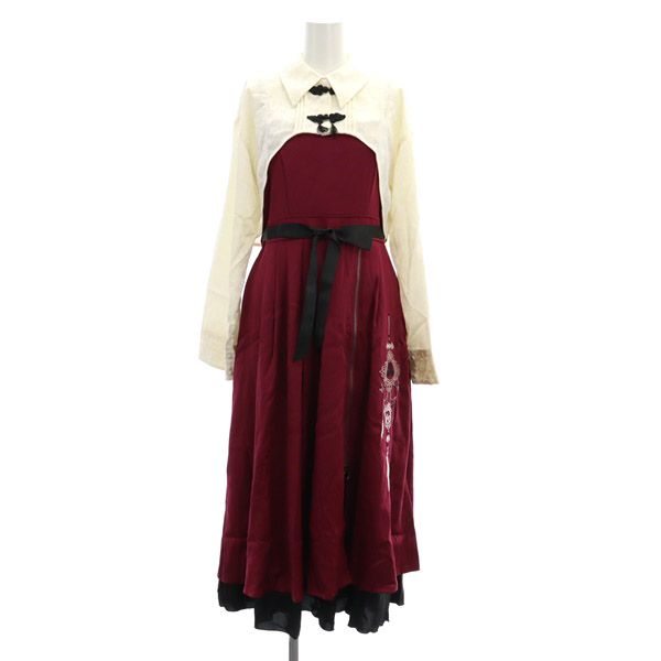 24SS チャイナ風刺繍キャミワンピース チャイナボタン付ボレロ風ブラウス セット