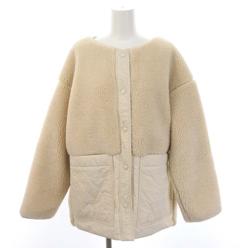ノーカラー キルト ボアブルゾン