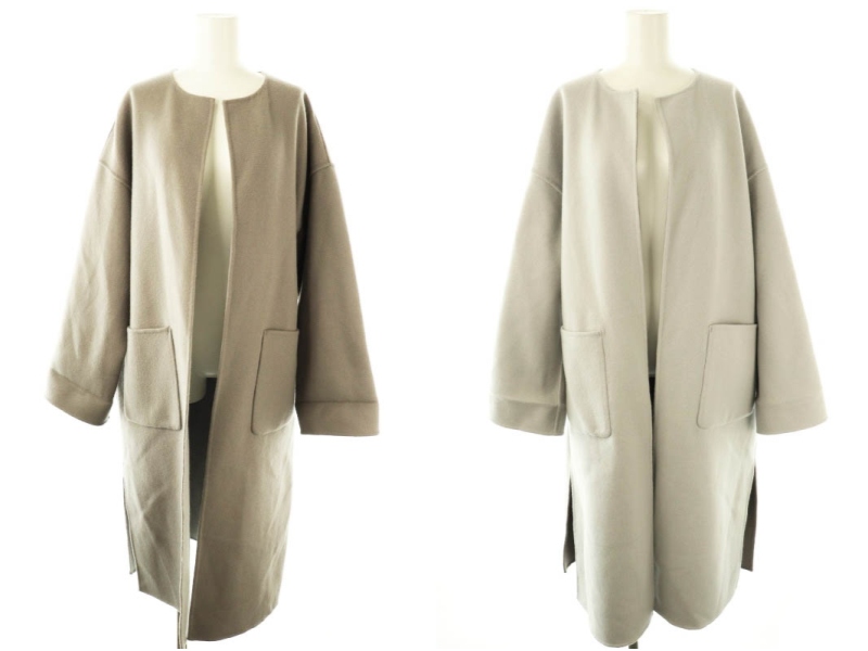 リバーシブルノーカラーロングコート