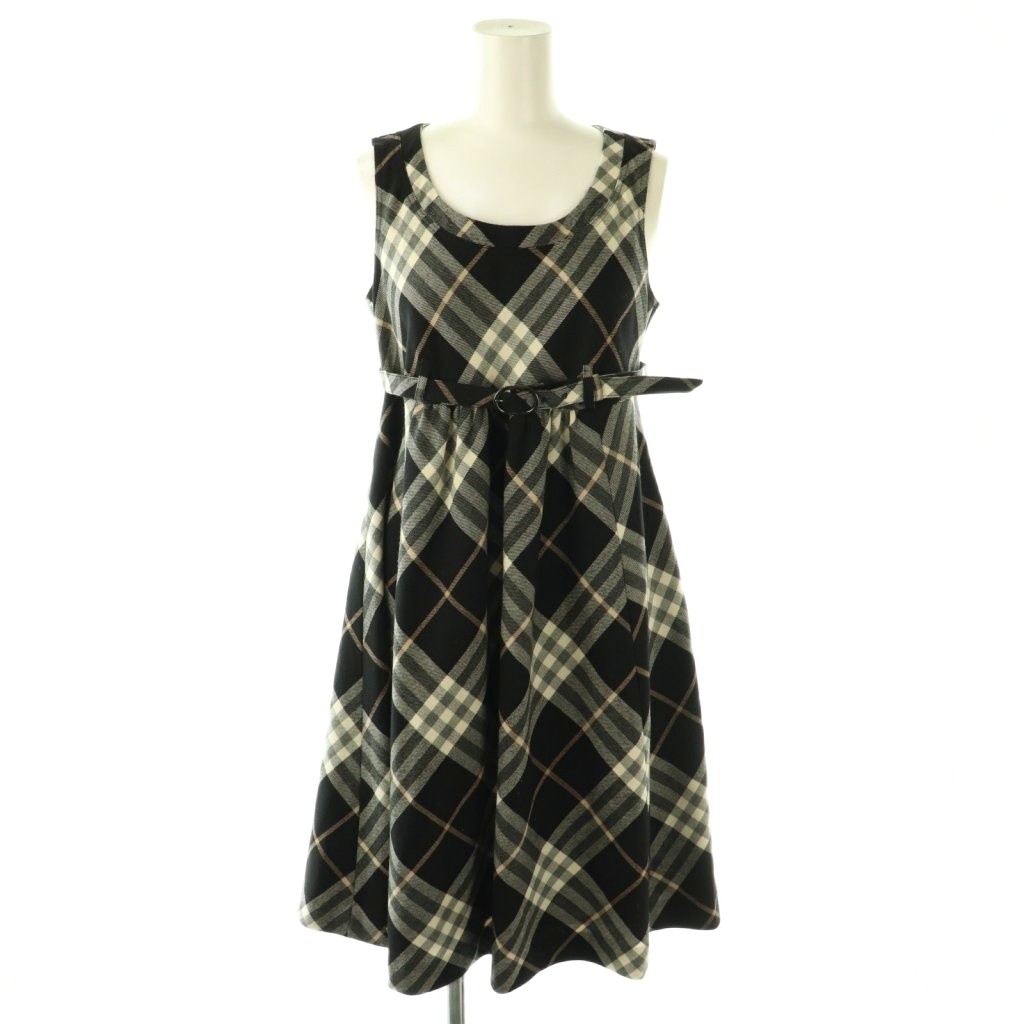 ベルト付きウールチェックワンピース