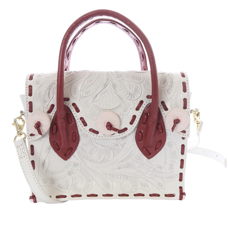 通常、このような技術は彫り易い馬革に施されることが多いのですが、レディースのバッグに使用することを踏まえ、牛革を使用している事が特徴です。