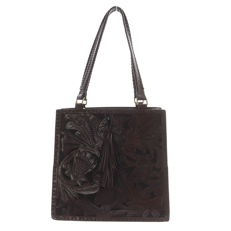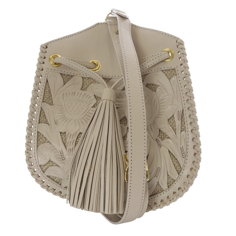 カービングバッグは柄をCARVE(彫刻)し、ハンドステッチで繋いで作り上げる手法が独特のもので、メキシコの職人達が1点1点丁寧に手彫りすることによって伝統的な草花が描かれていきます。