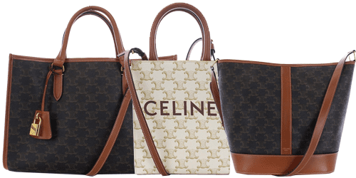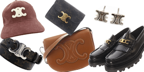 トリオンフモチーフの金具やトリオンフ柄を配したトリオンフキャンバスなど、トリオンフをあしらったアイテムは、バッグや財布をはじめ、靴や洋服、小物類に至るまで幅広く展開されています。そのアイコニックな存在感は一目で「セリーヌ」とわかる強い魅力を放ち、多くのファンを惹きつけ続けています。