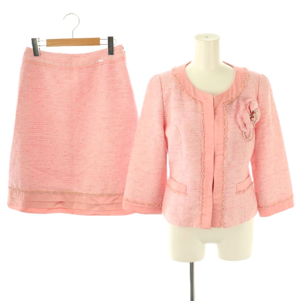 ツイード コサージュ付き ジャケット スカート セットアップ