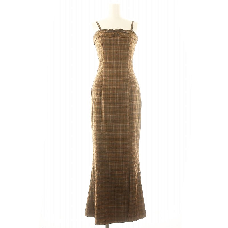 24AW レザーリボンチェックロングワンピース
