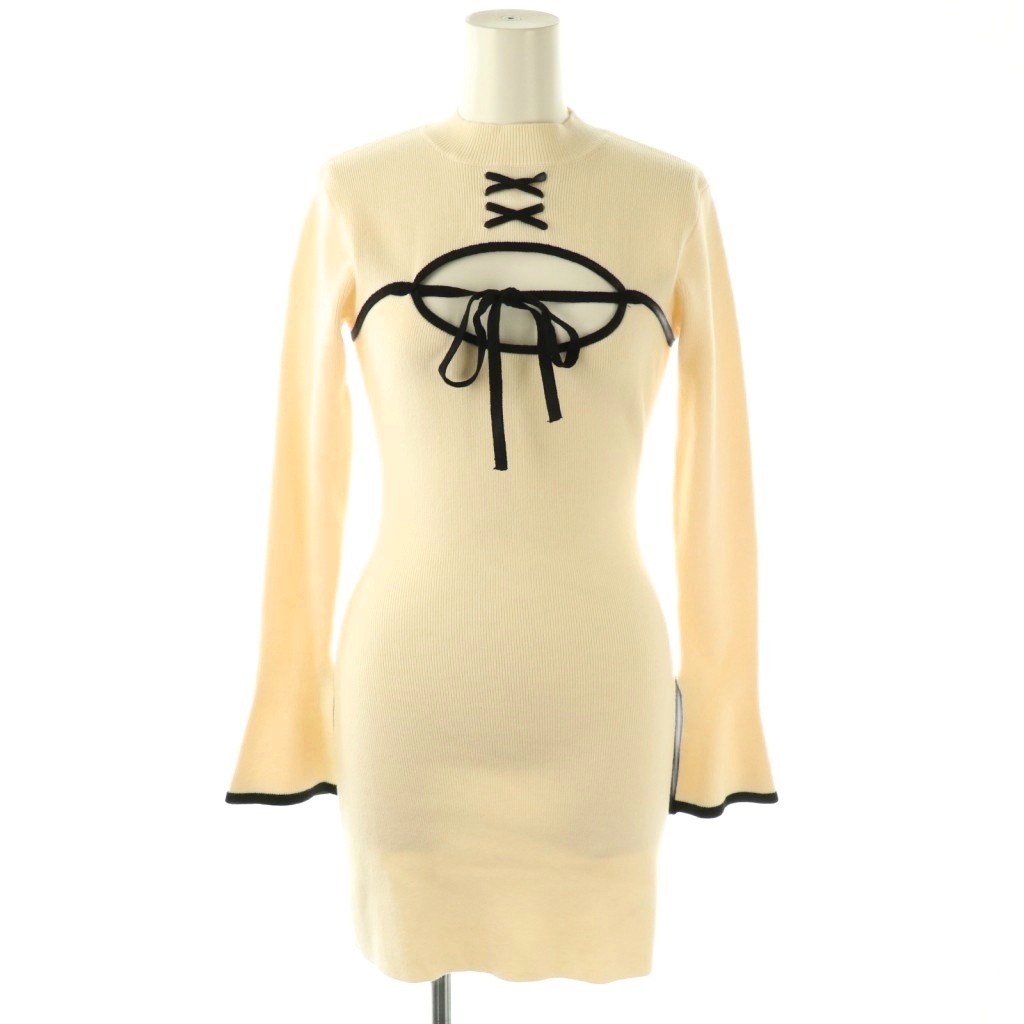 24AW フロントオープンリボンニットミニワンピース