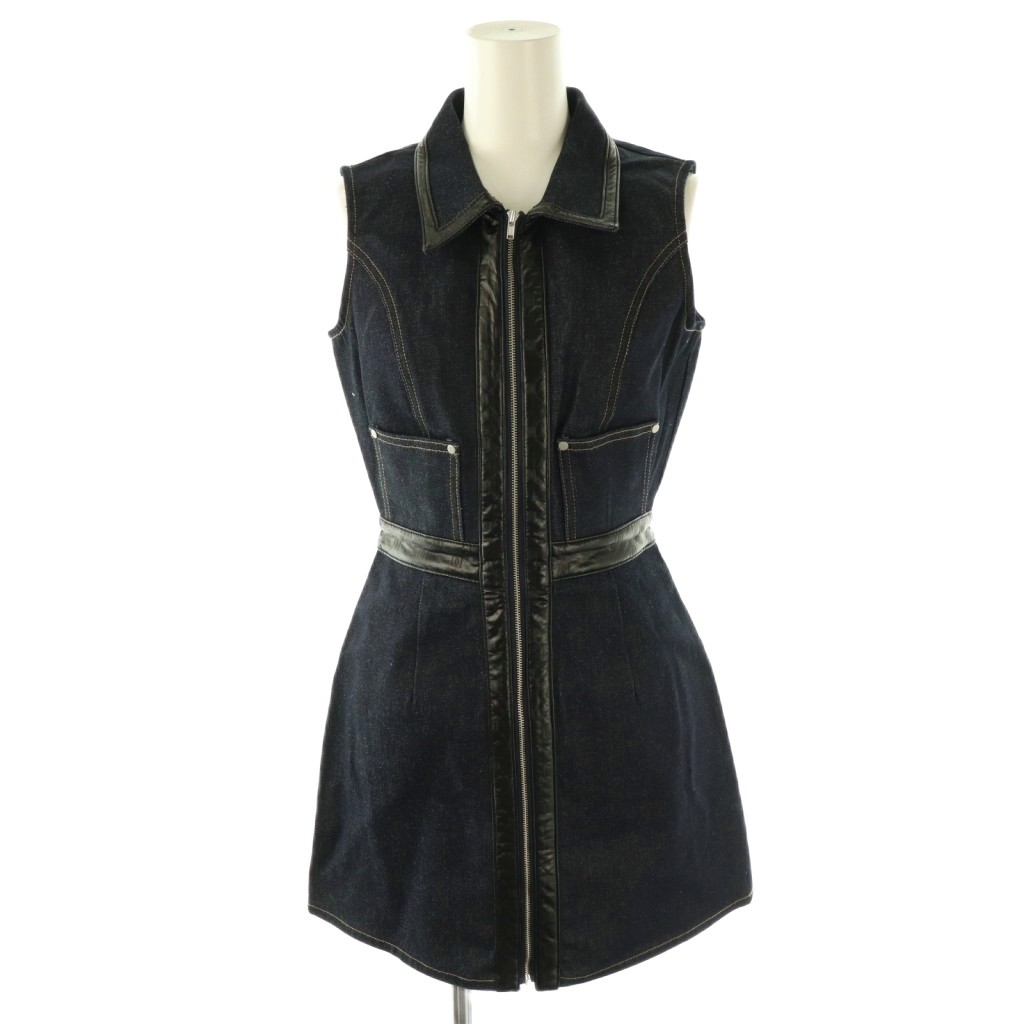 25SS レザーコンビノースリデニムミニワンピース