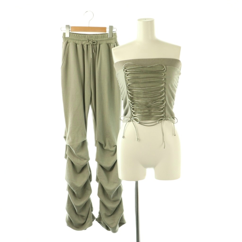 レースアップギャザースウェットトップス タックフレアスウェットパンツ セット