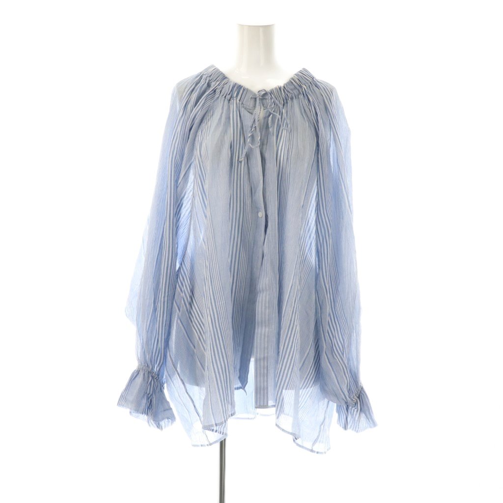 ハイツイストローン ネックギャザーブラウス ストライプ