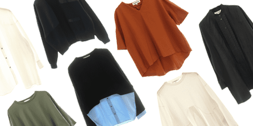 エンフォルドの定番として展開されているボックスシルエットのオーバーサイズトップスは、ブランドを象徴する存在。シャツやニット、スウェット、カットソーなど、シーズンごとに多彩なアイテムが登場しています。身体のフォルムを包み込むことで生まれる独特の美しさは、体型をさりげなくカバーできる点でも高く評価されています。