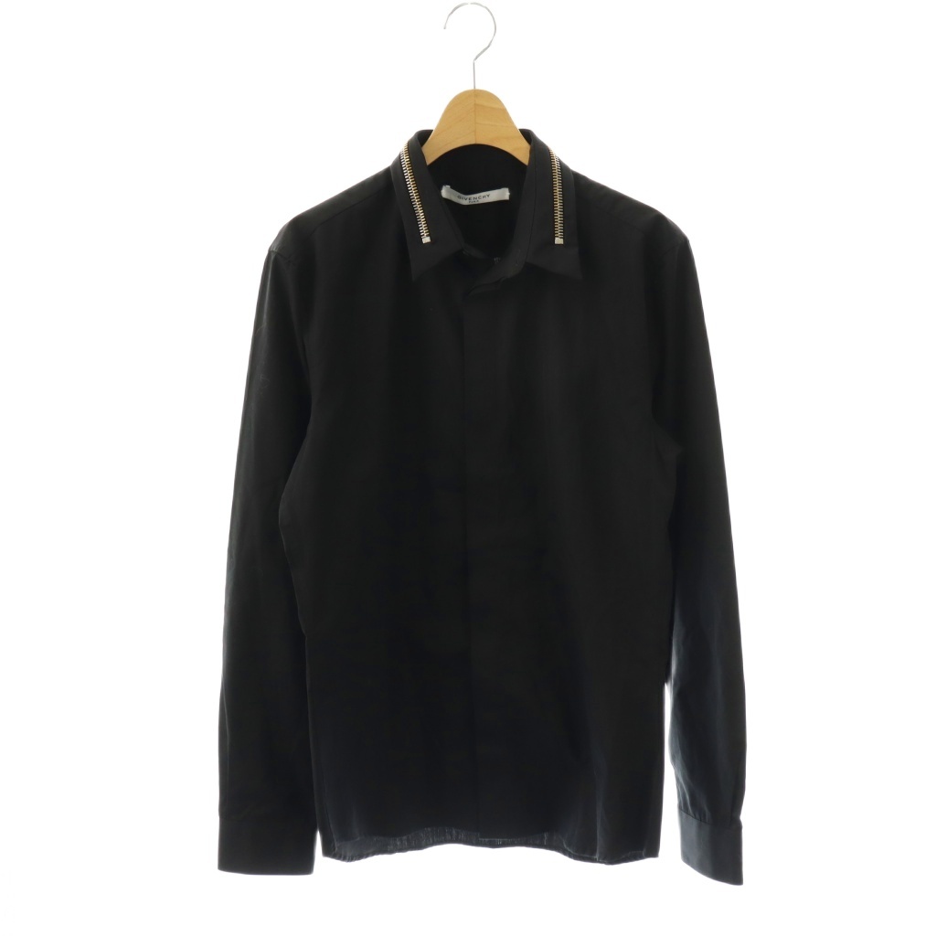 襟ジップデザイン 比翼ボタン シャツ