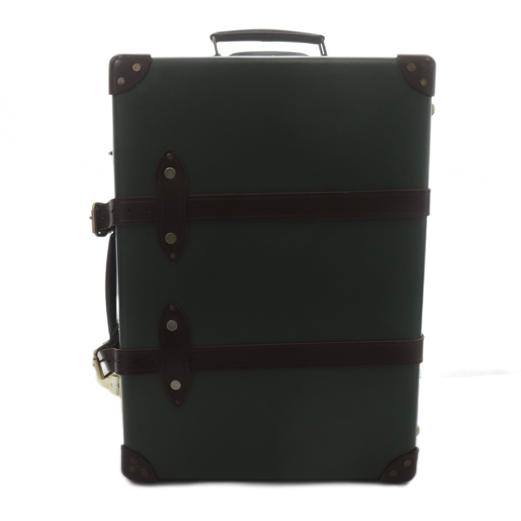 ヴァルカン・ファイバーと呼ばれる、特殊な紙を何層も重ね樹脂をコーティングした特殊素材を使用し、軽量さ、弾力性、頑強さを実現しており、デザインはミニマルなものが多く、色落ちが良い風合いを出していくのもグローブ・トロッターのケースの最大の特徴。
