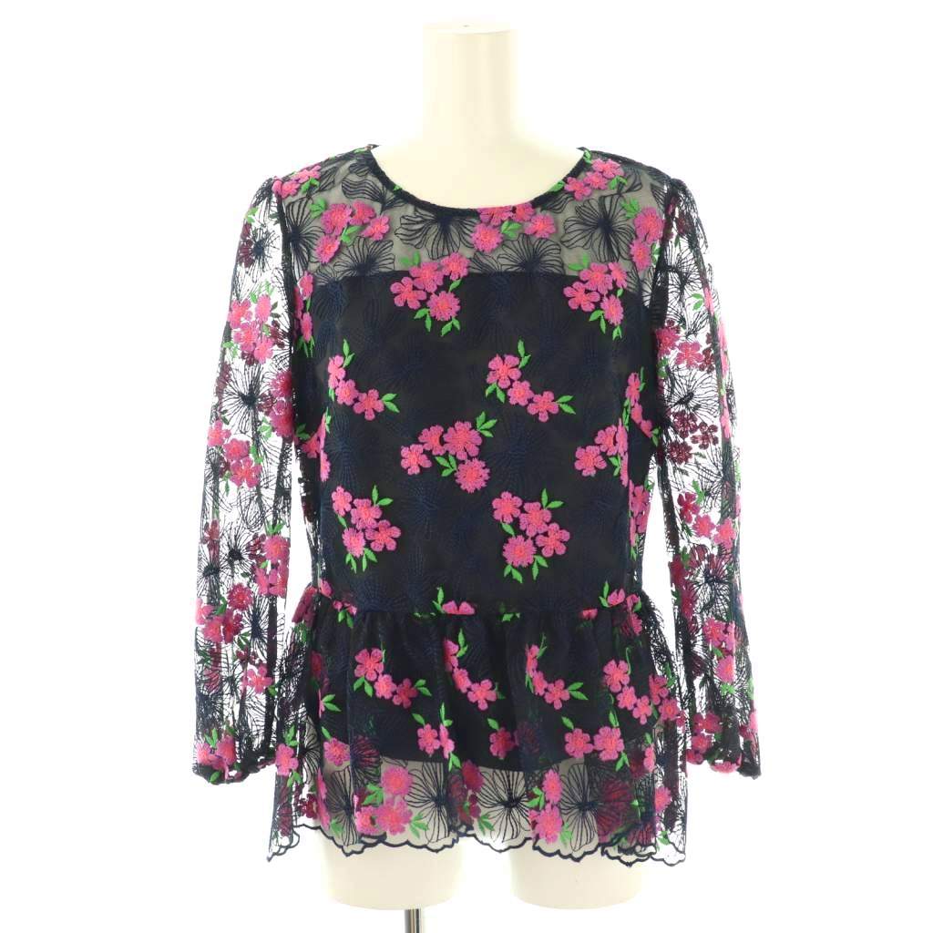 チュール刺繍ペプラムトップ トップス