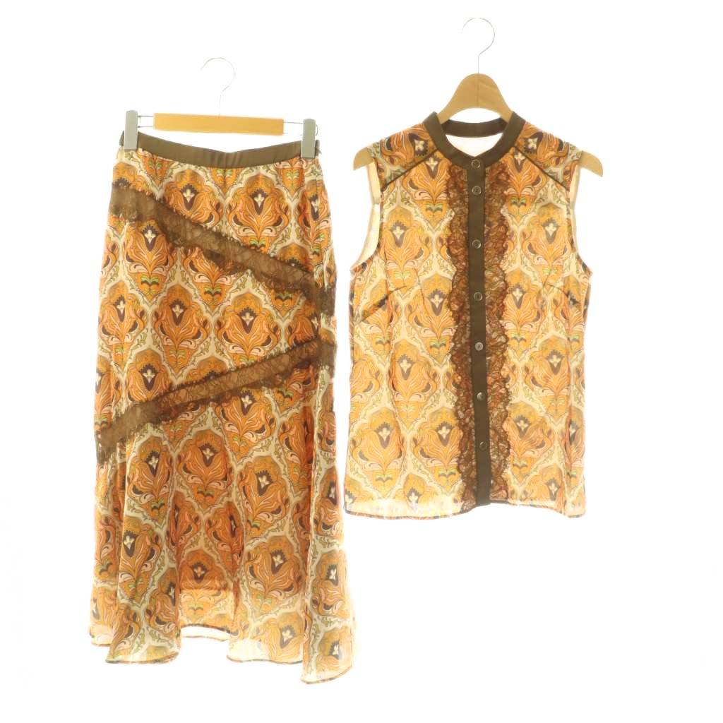23SS オーナメントプリントレースノースリーブ マーメイドスカート セットアップ