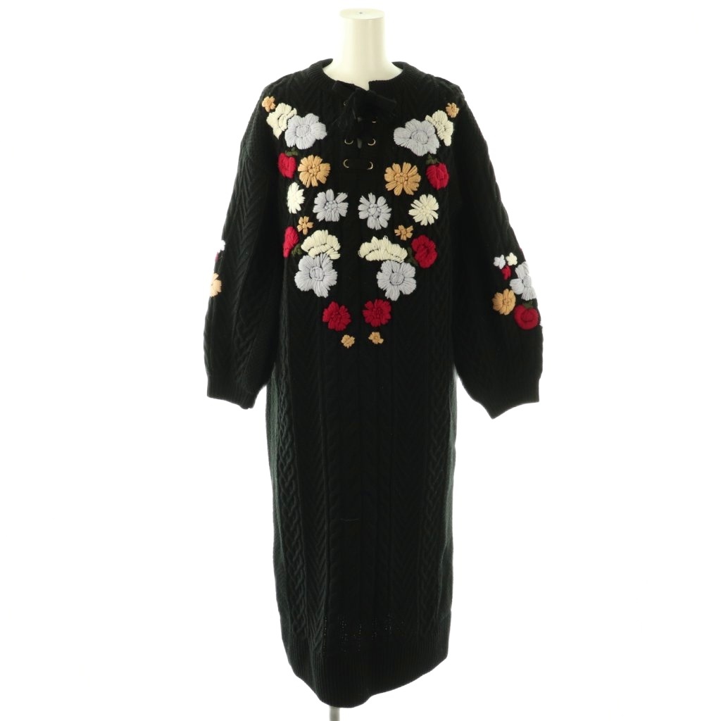 刺繍ケーブルニットワンピース