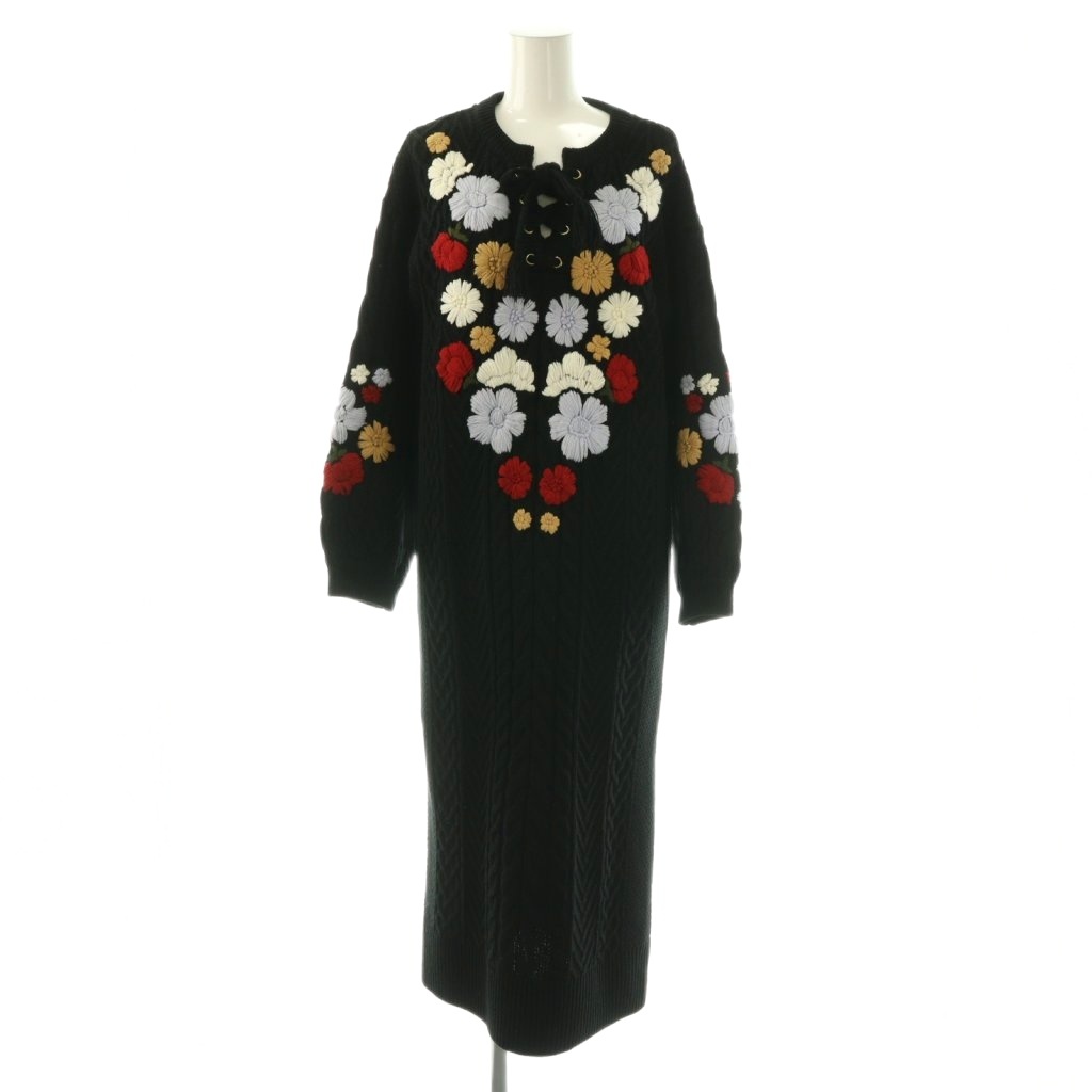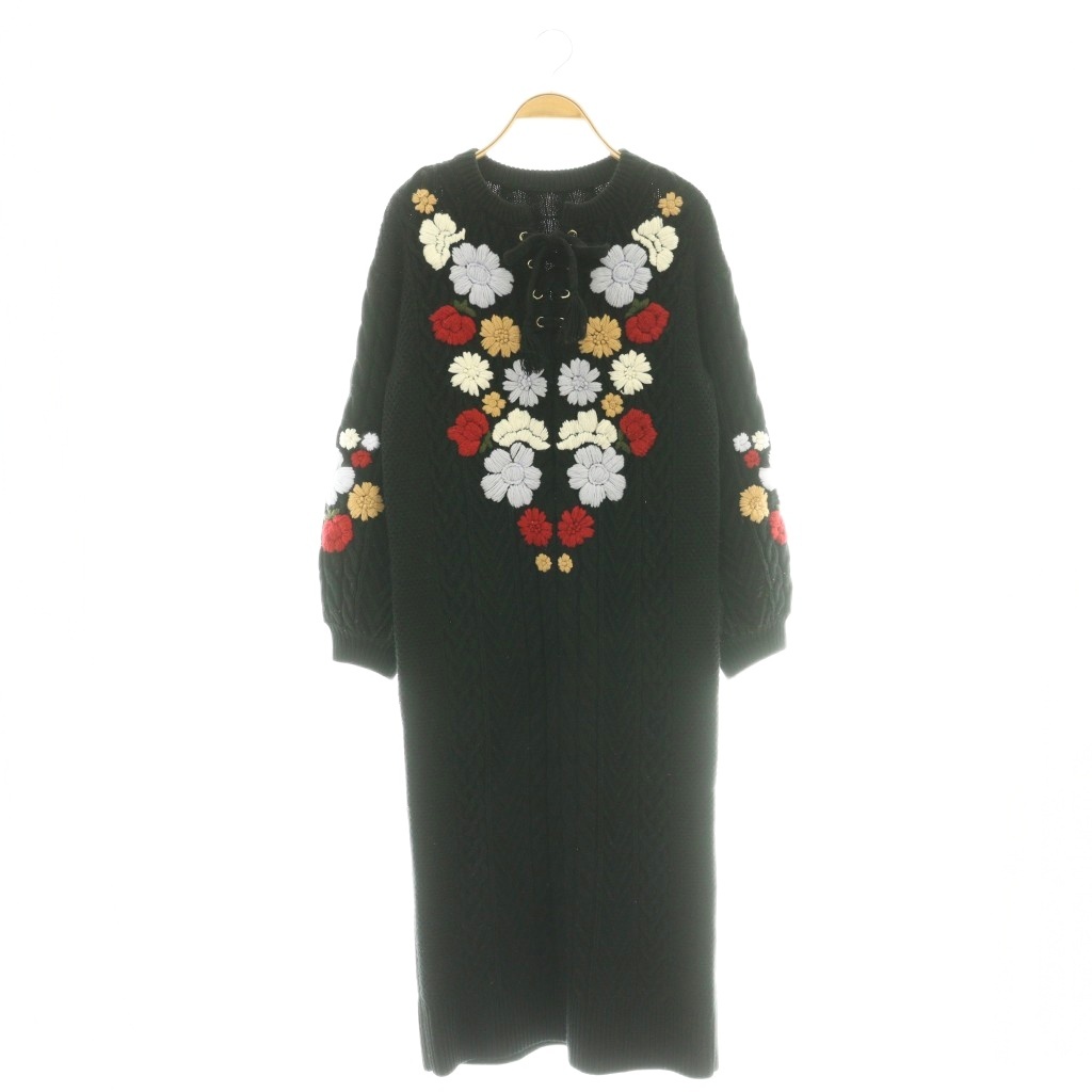 刺繍ケーブルニットワンピース