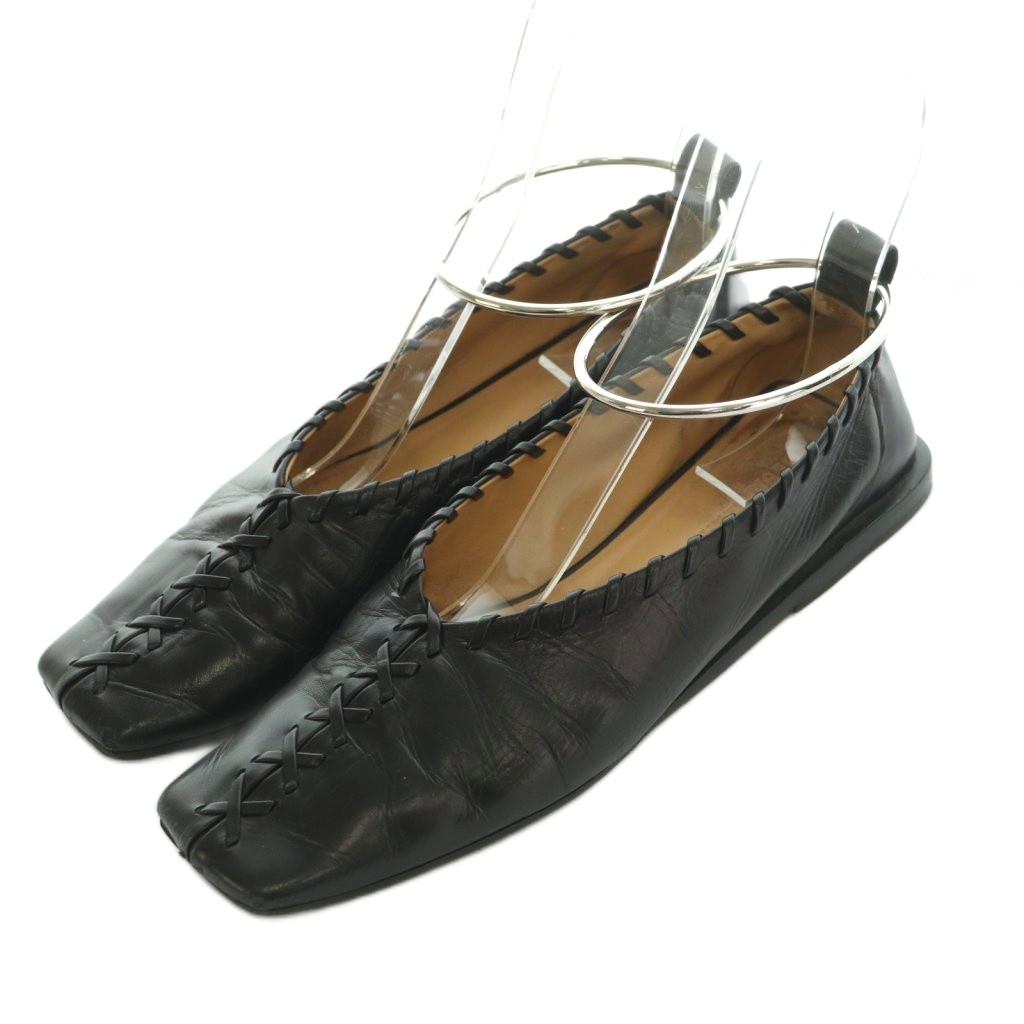 アンクルリング バレリーナ ステッチ フラットパンプス