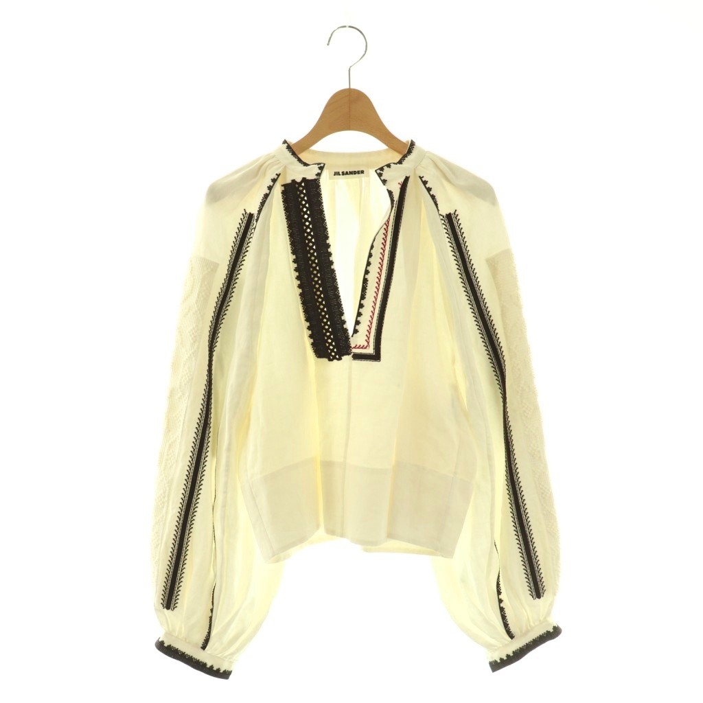 刺繍 キーネックブラウス