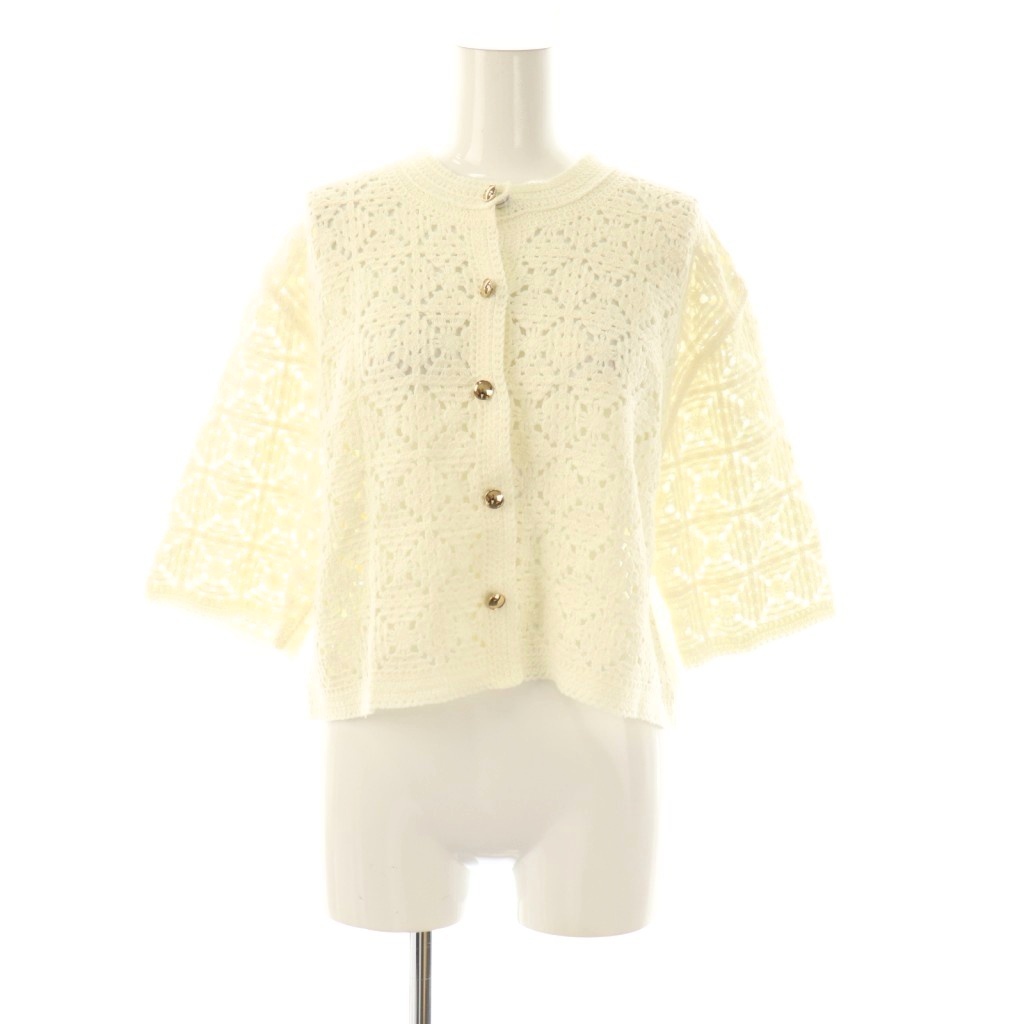 柄編みハーフスリーブニットジャケット