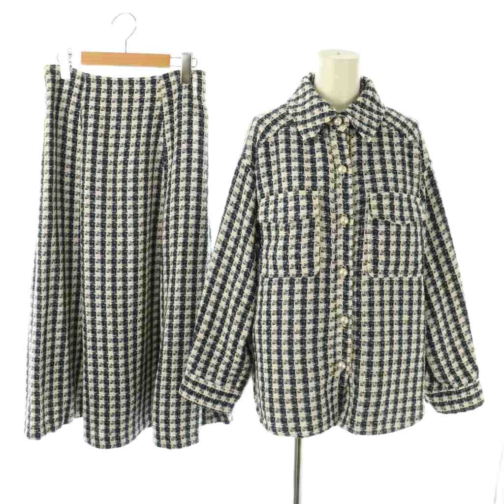 パールボタン ツイード ジャケット スカート セットアップ