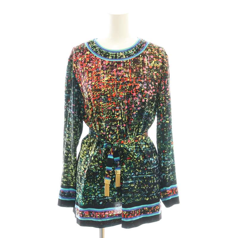 ベルト付きコットンシルク総柄カットソー