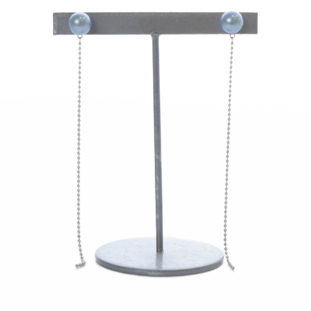 24年 インディゴパール1粒ピンピアス K10 ボールチェーンピアスキャッチ WG K10 セット