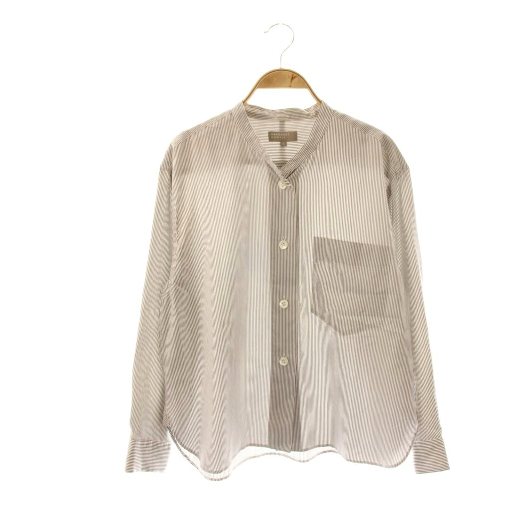 SILK COTTON STRIPE バンドカラーシャツ