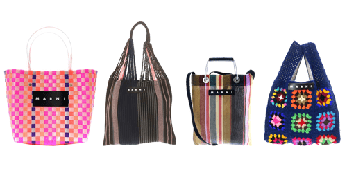 マルニマーケットで展開されるバッグは、「ショッパー」「ハンモックバッグ」「ピクニックバッグ」「フィッシュバッグ」など、アート性と遊び心を感じさせるデザインが魅力。1点1点手作業で作られるハンドメイドならではの温もりと個性は、他にはない存在感を放ち、根強いファンに支持されています。