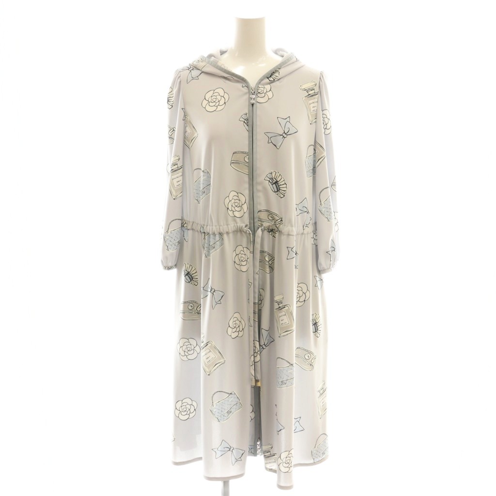 フード付き アイコンプリント ジップアップワンピース