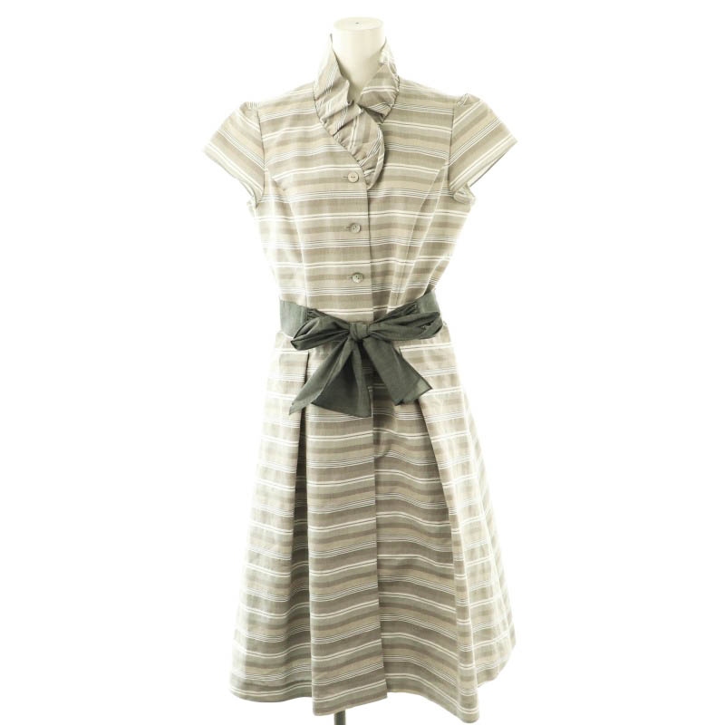 ボーダー柄 フリル シャツワンピース