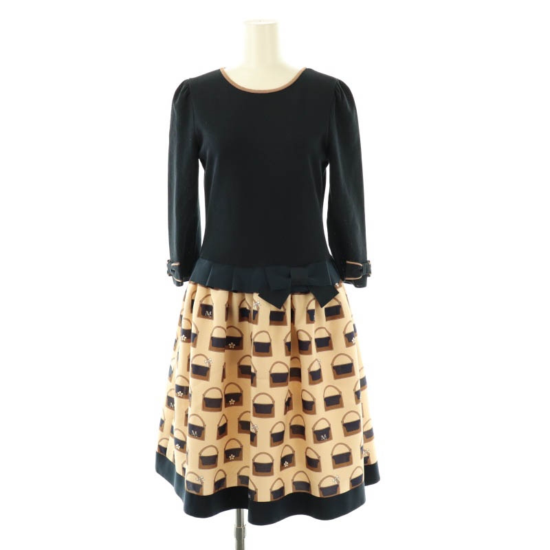 バッグ柄 リボン ワンピース