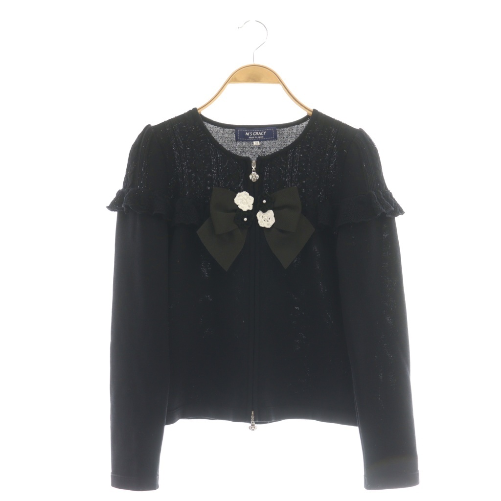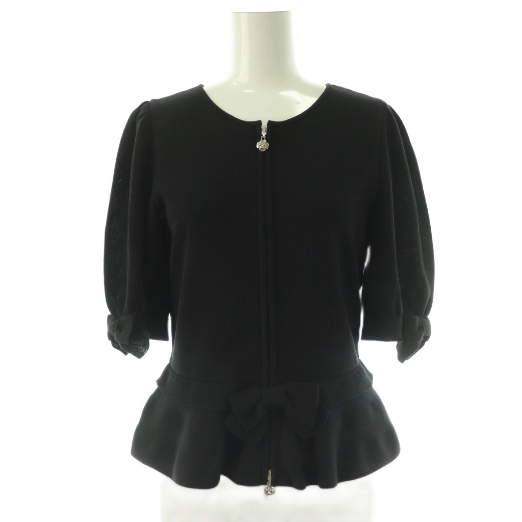 リボン 半袖 ジップアップニット
