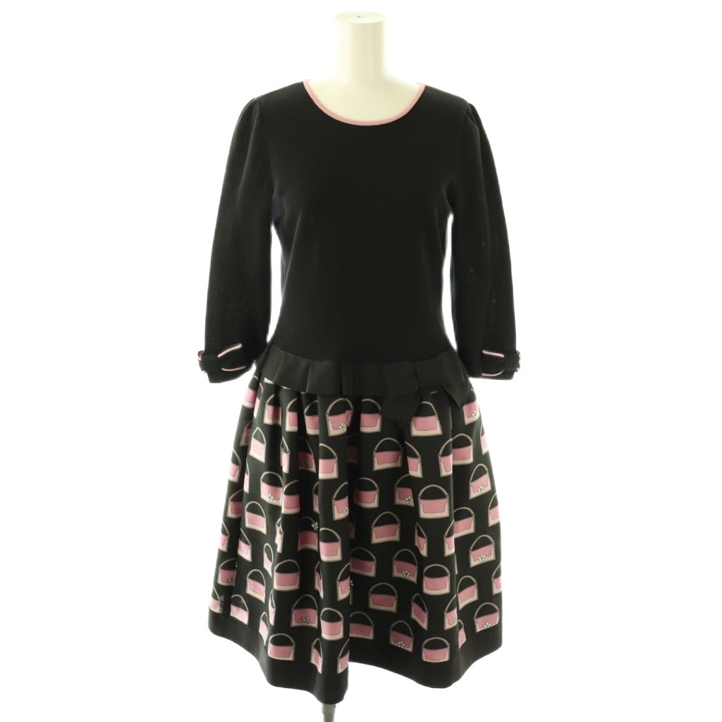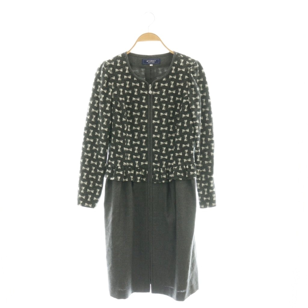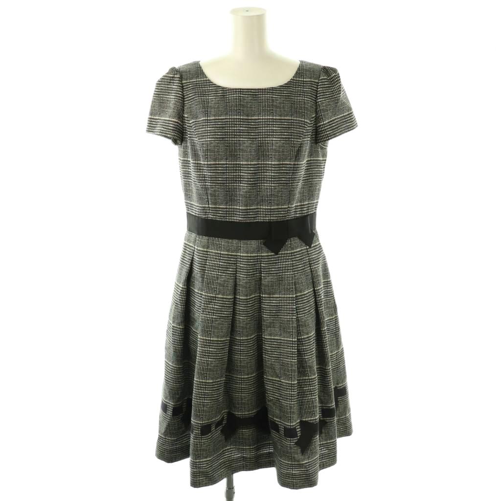ウール混 リボン柄 ワンピース