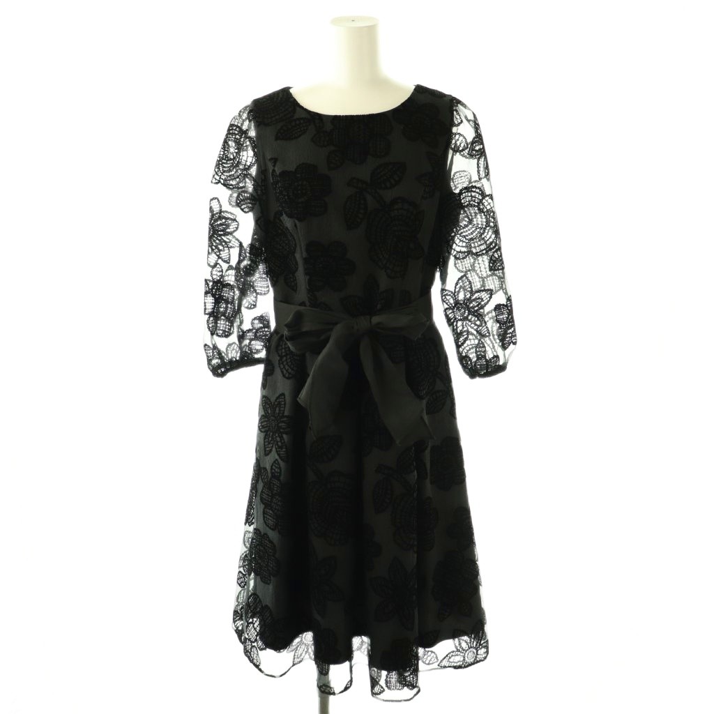花柄レース リボン シアー ワンピース