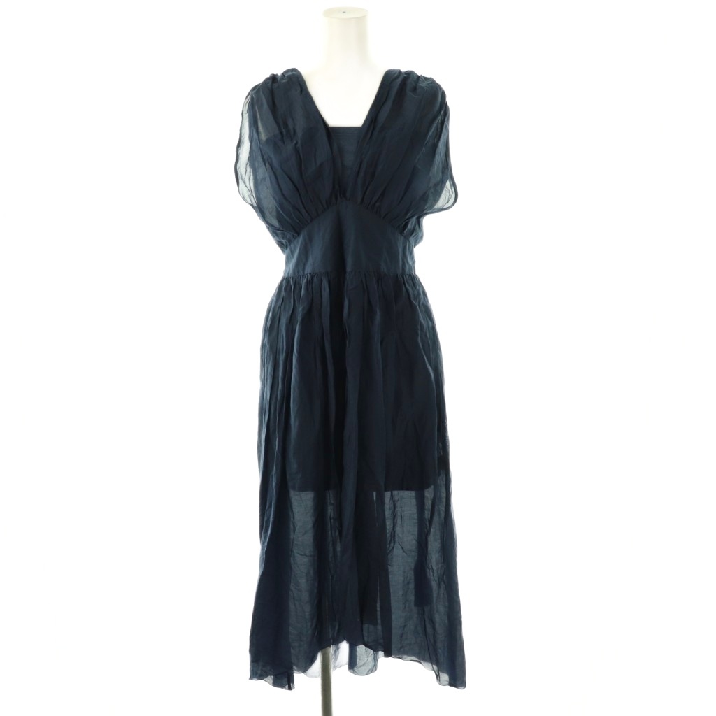 シルク混コットンギャザーノースリーブワンピース