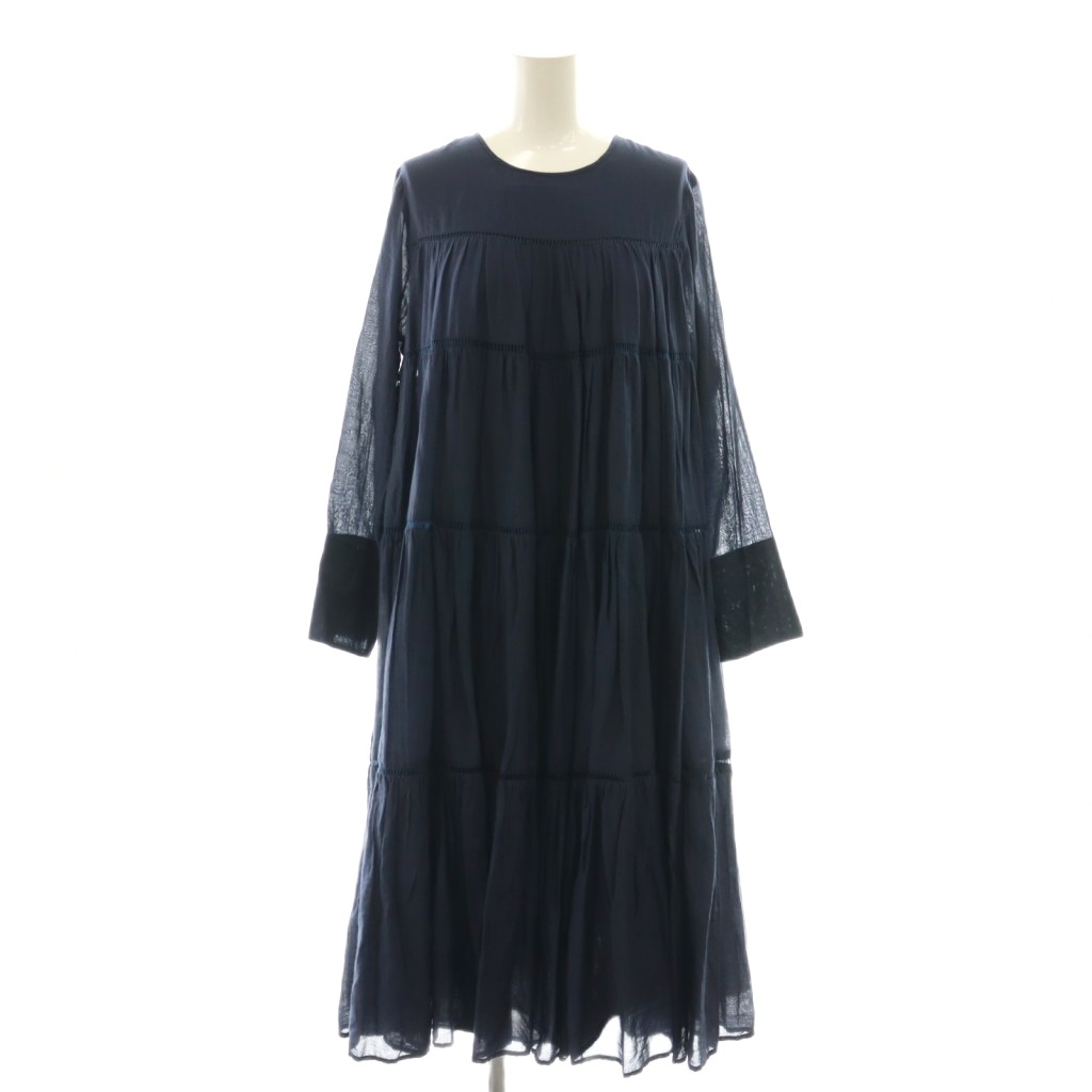 Cotton voil panel long sleeve dress ワンピース