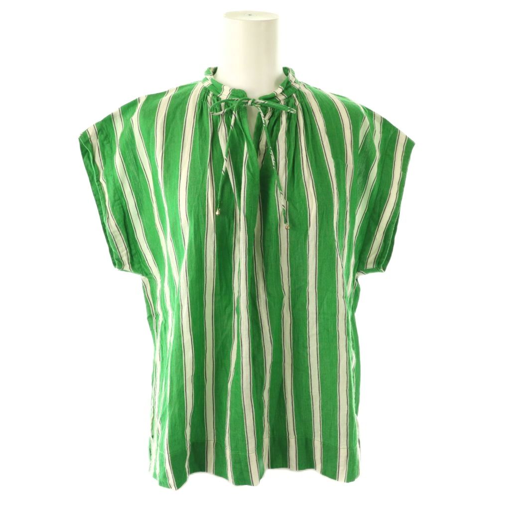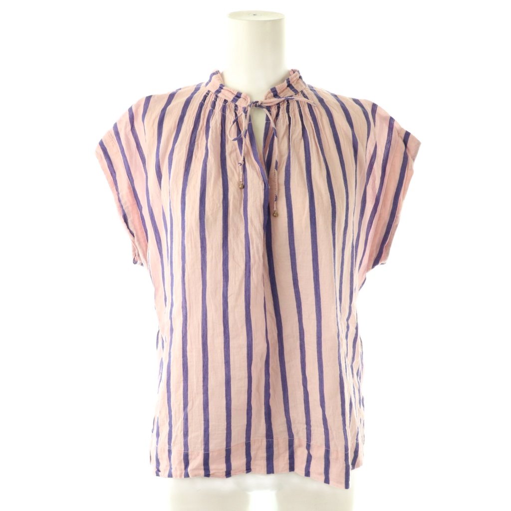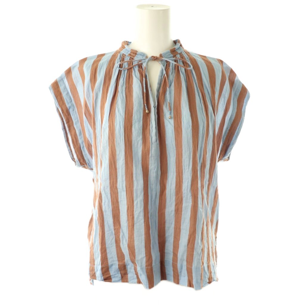 24SS Cotton Voile Stripe French Sleeve Blouse ブラウス