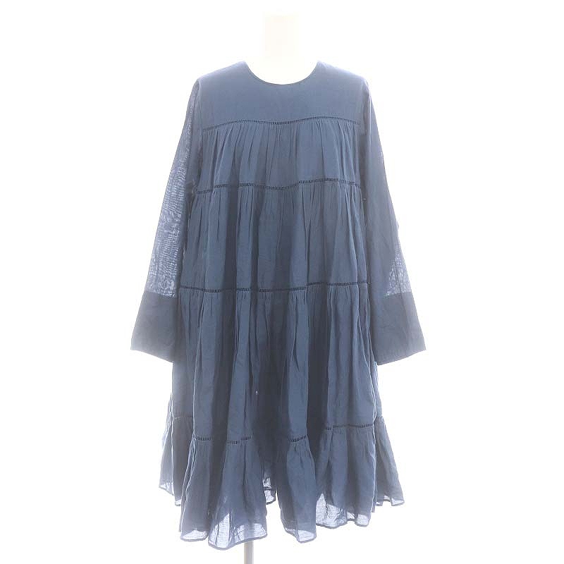 コットン ティアード ロングスリーブ ショートワンピース