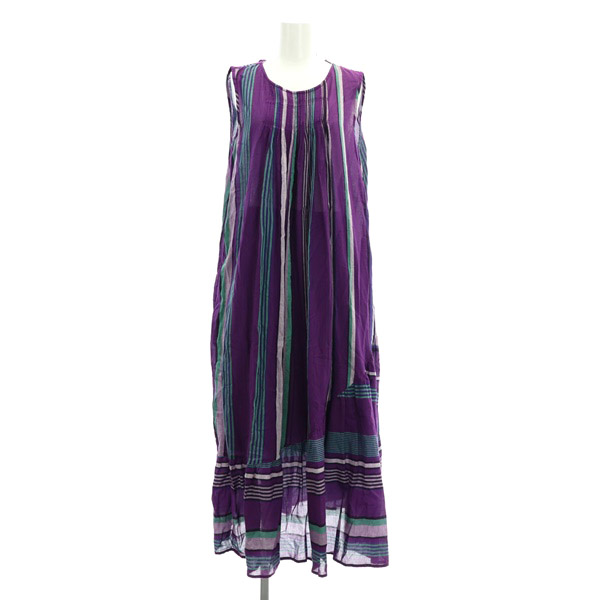 コットン ストライブプ ノースリーブ ロングワンピース