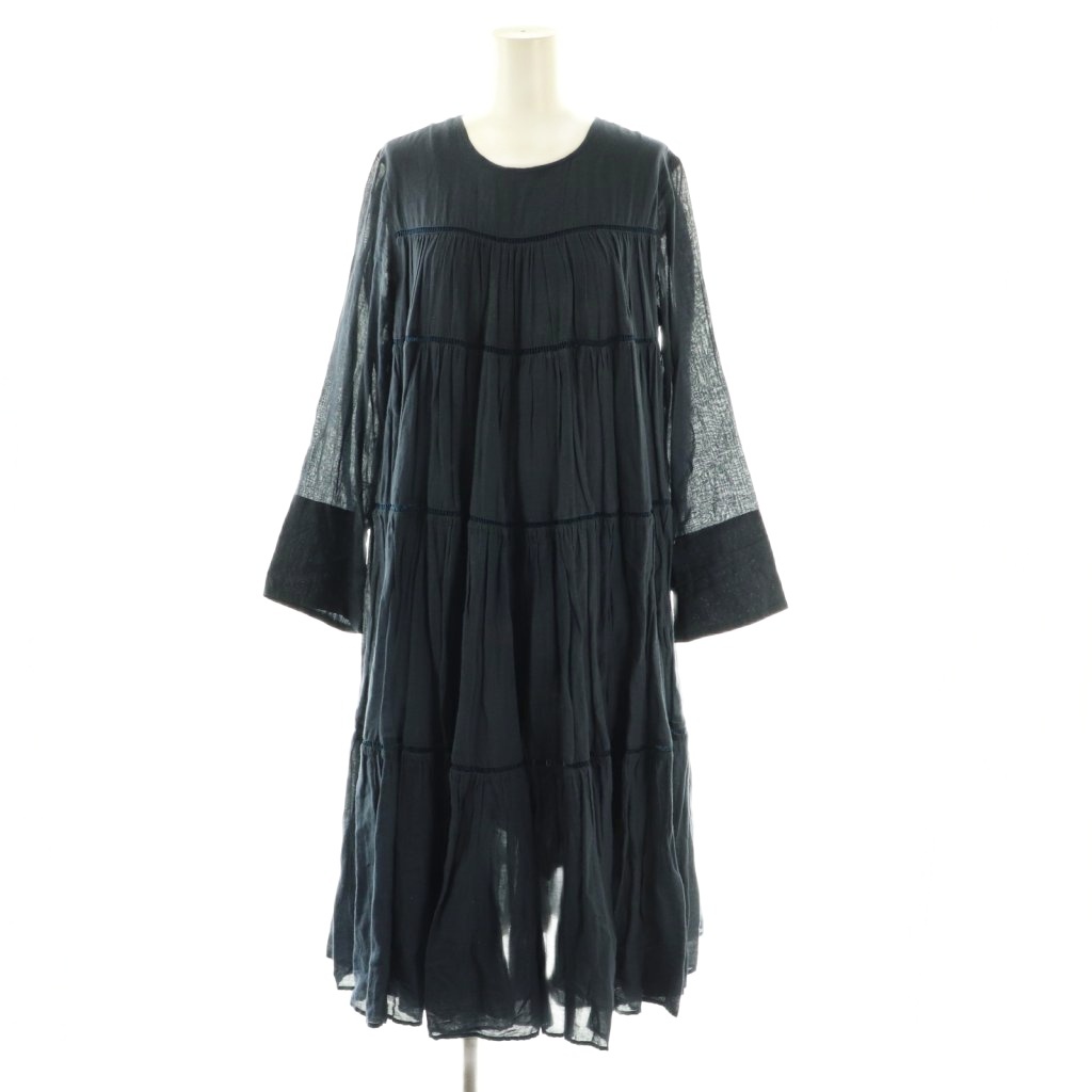 コットンボイルパネルロングスリーブワンピース