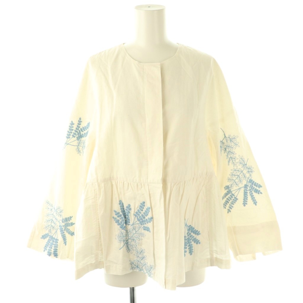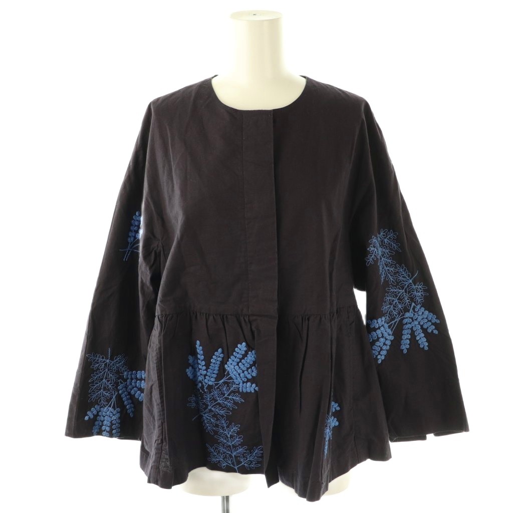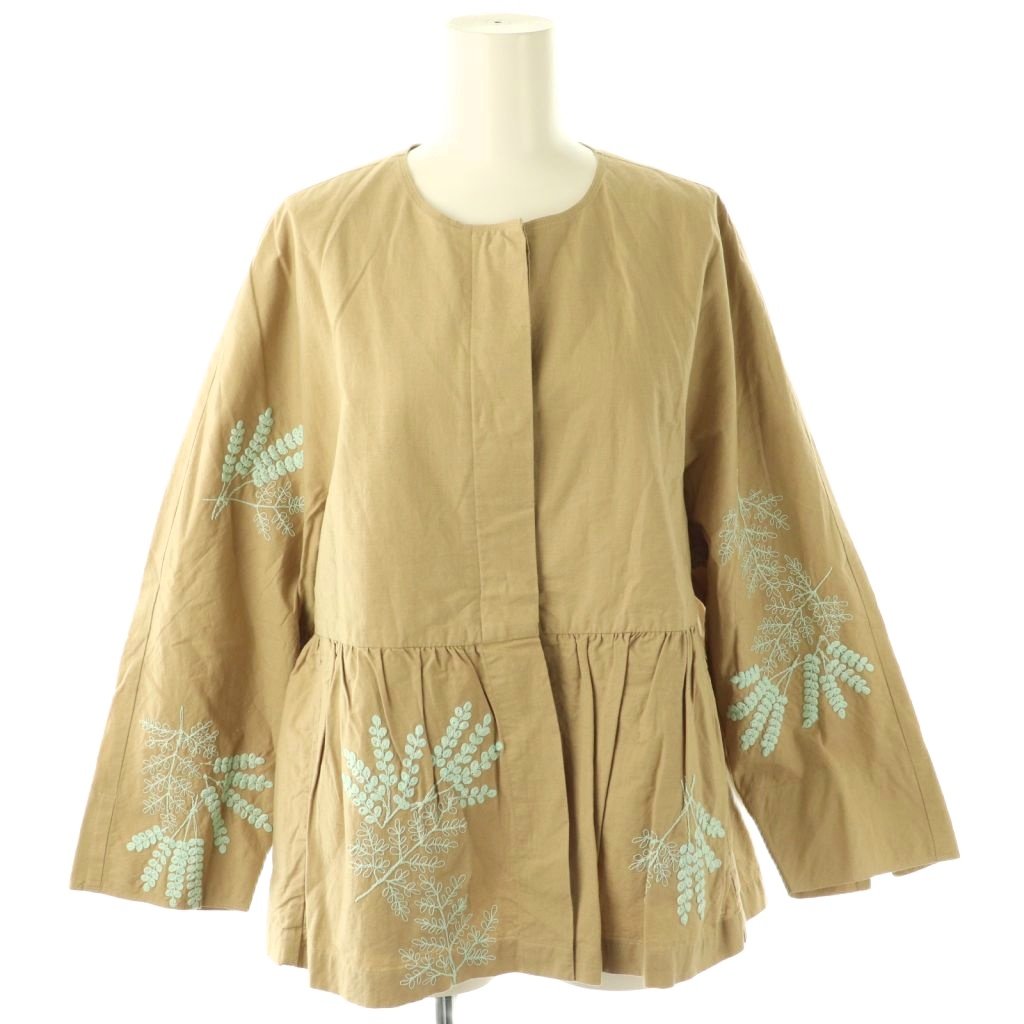 24AW Cotton Linen Plants Embroidery Long Sleeve Blouse ジャケット