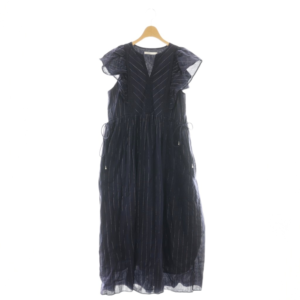 Cotton Lurex Stripe Frill Sleeve Dress ワンピース