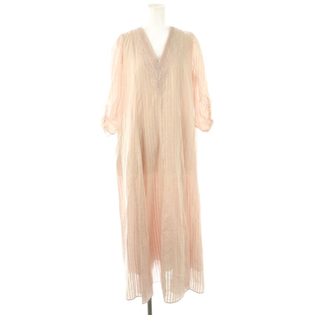 Cotton Lurex Stripe Lace Gather Sleeve Dress ワンピース