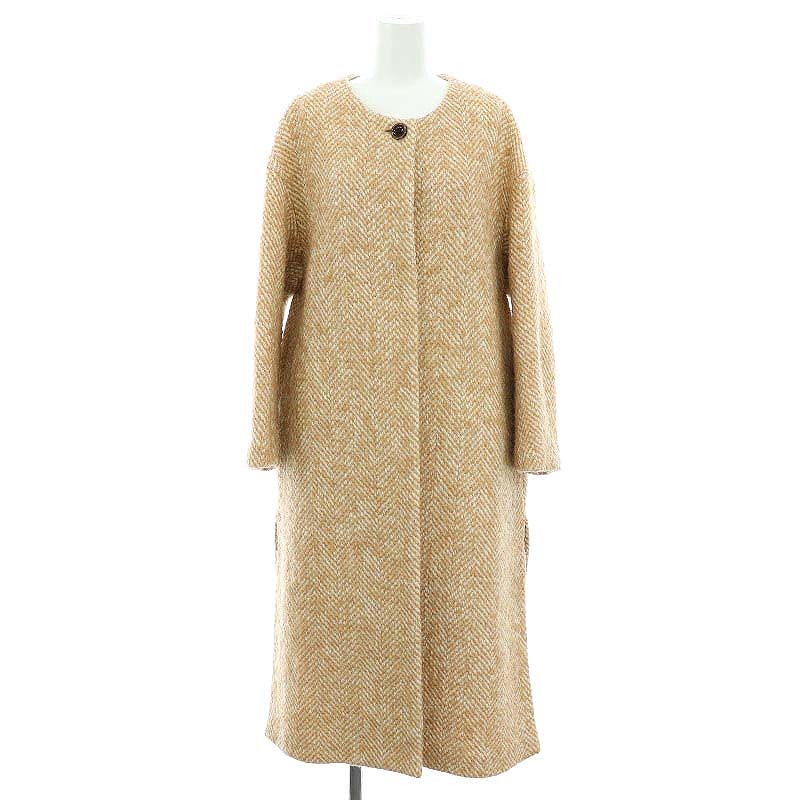 ノーカラーウールロングコート